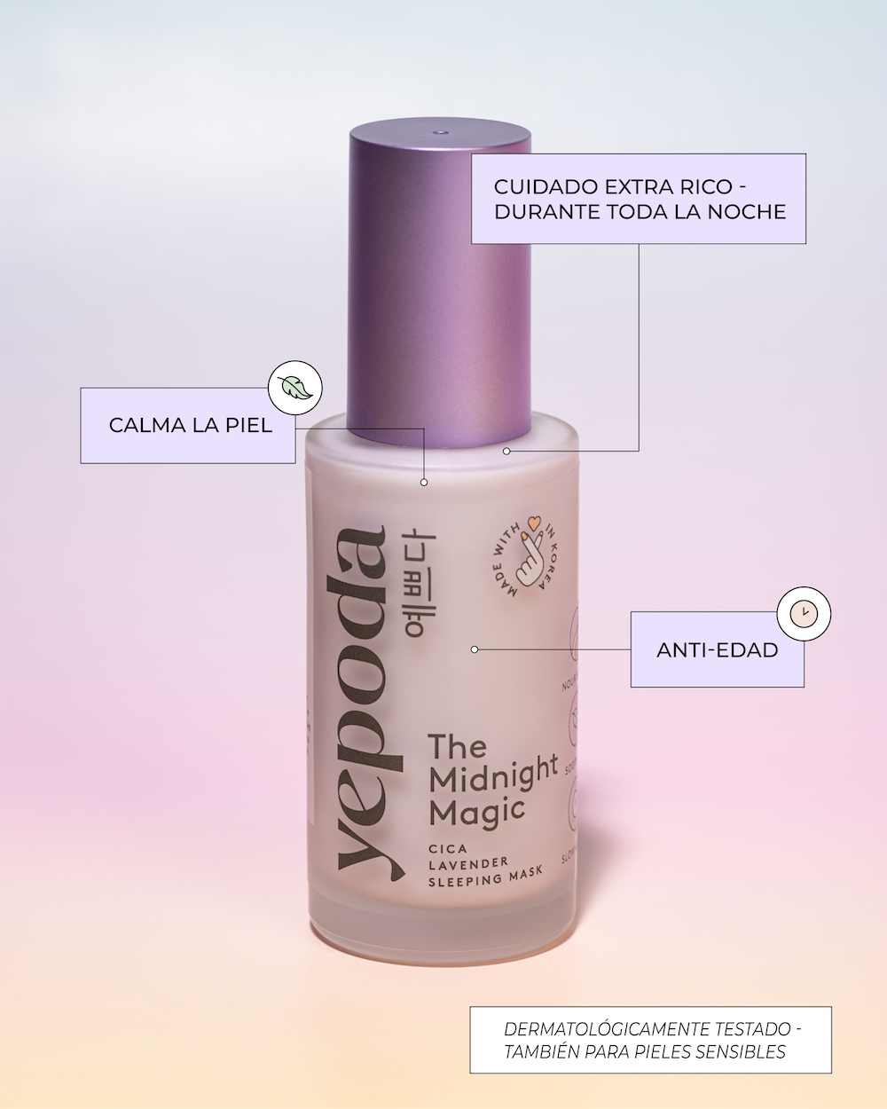 • Nutrición: El poderoso ingrediente cica previene la deshidratación de tu piel y, apoyado por la combinación de ácido hialurónico, jojoba, manteca de karité y aceite de camelia, esta mascarilla para dormir hidrata tu piel al máximo