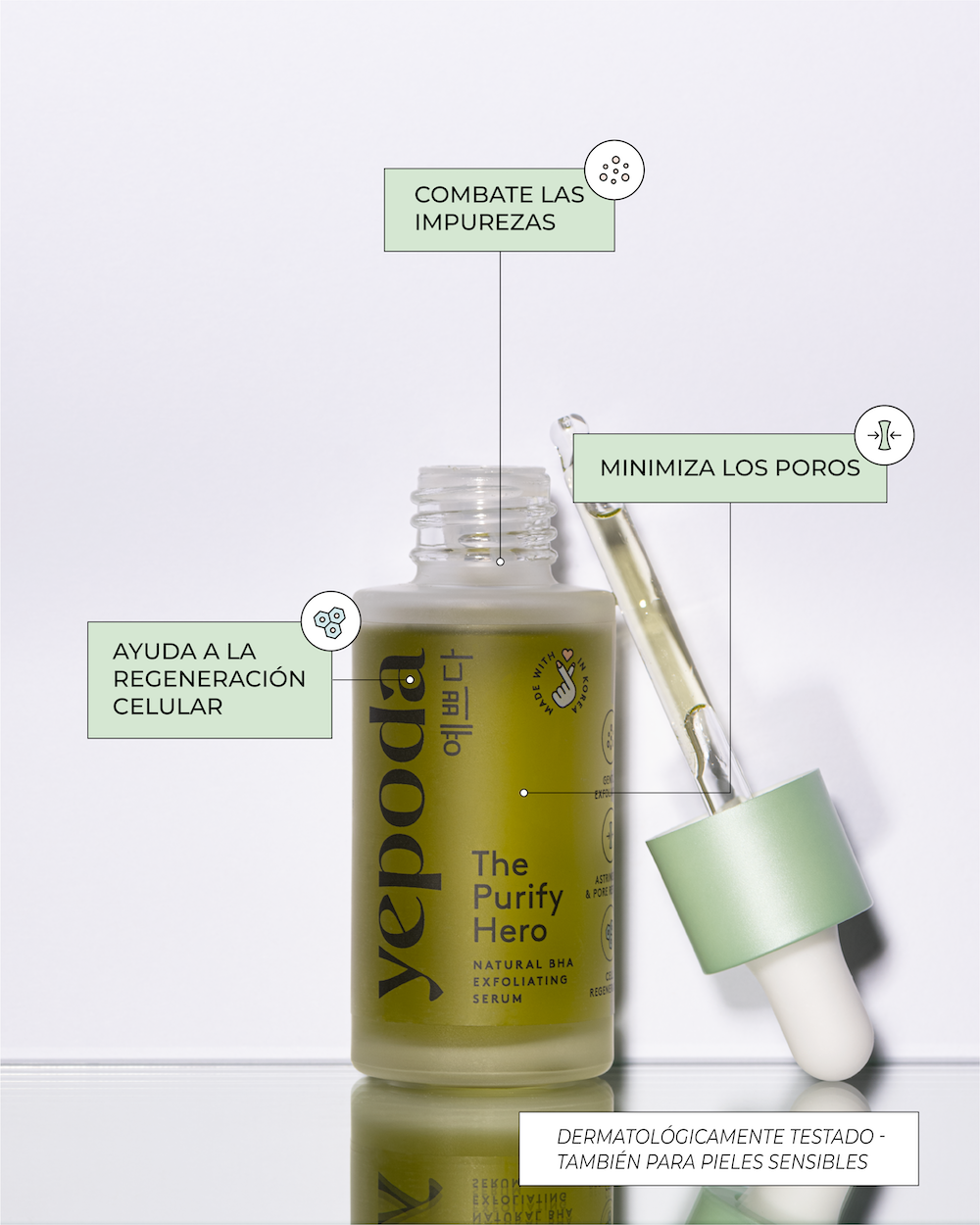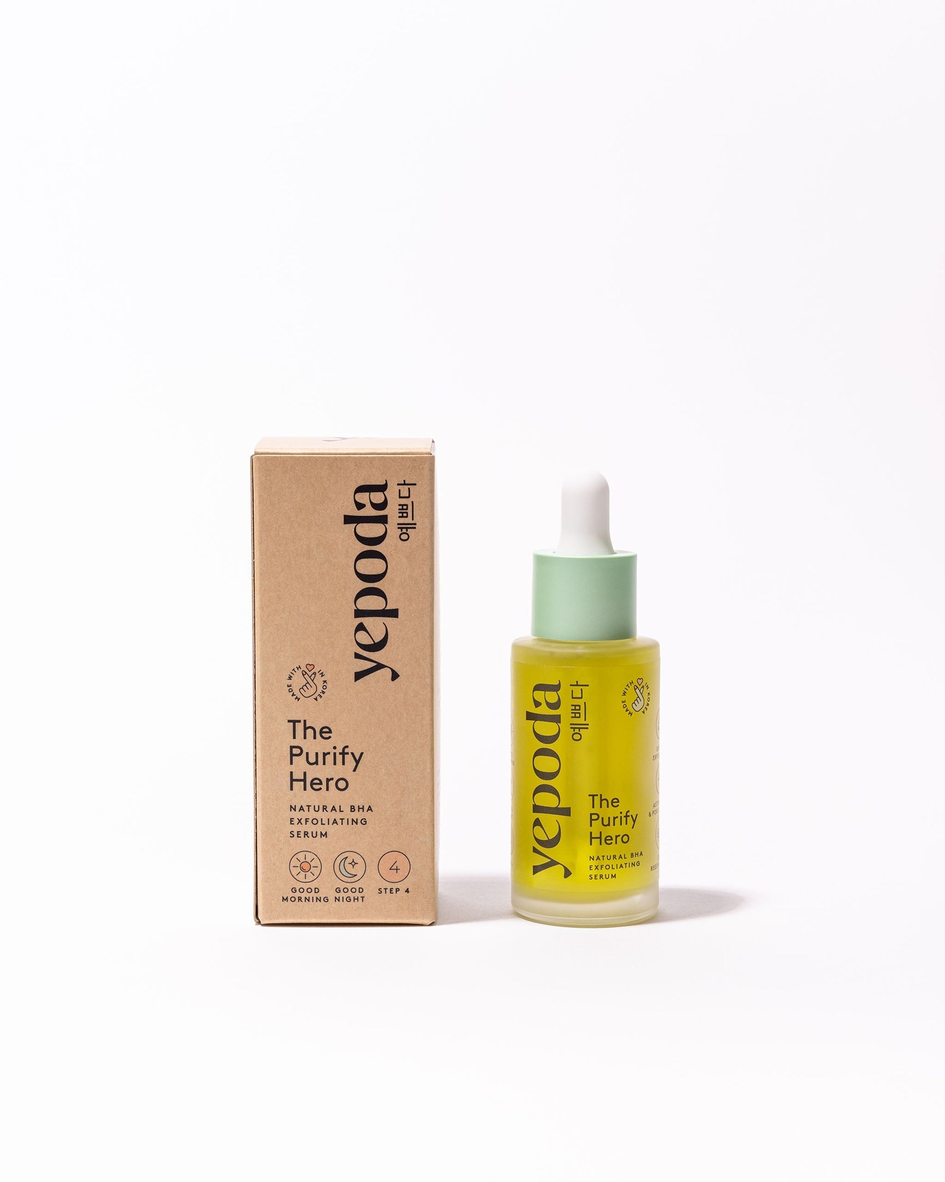 ¿Impurezas? ¡El Purify Hero es la solución! Nuestro sérum clarificante tipo peeling con extracto de corteza de sauce -una alternativa natural al ácido salicílico- exfolia la piel, desobstruye los poros, estimula la renovación celular y, por lo tanto, purifica tu piel.